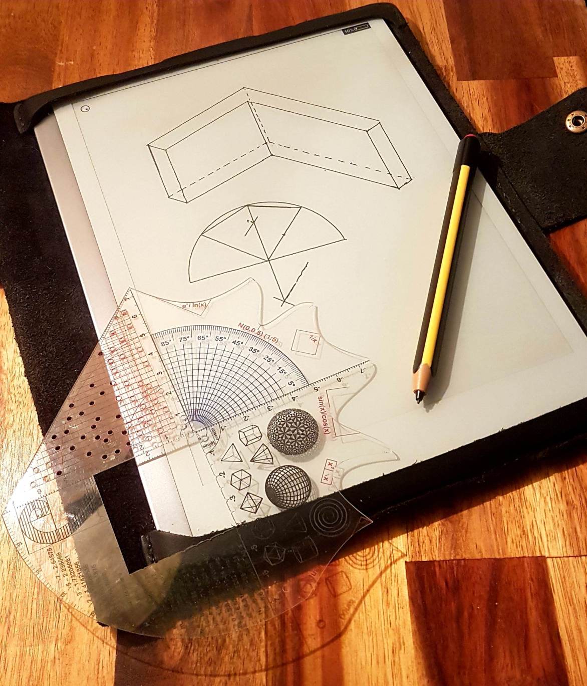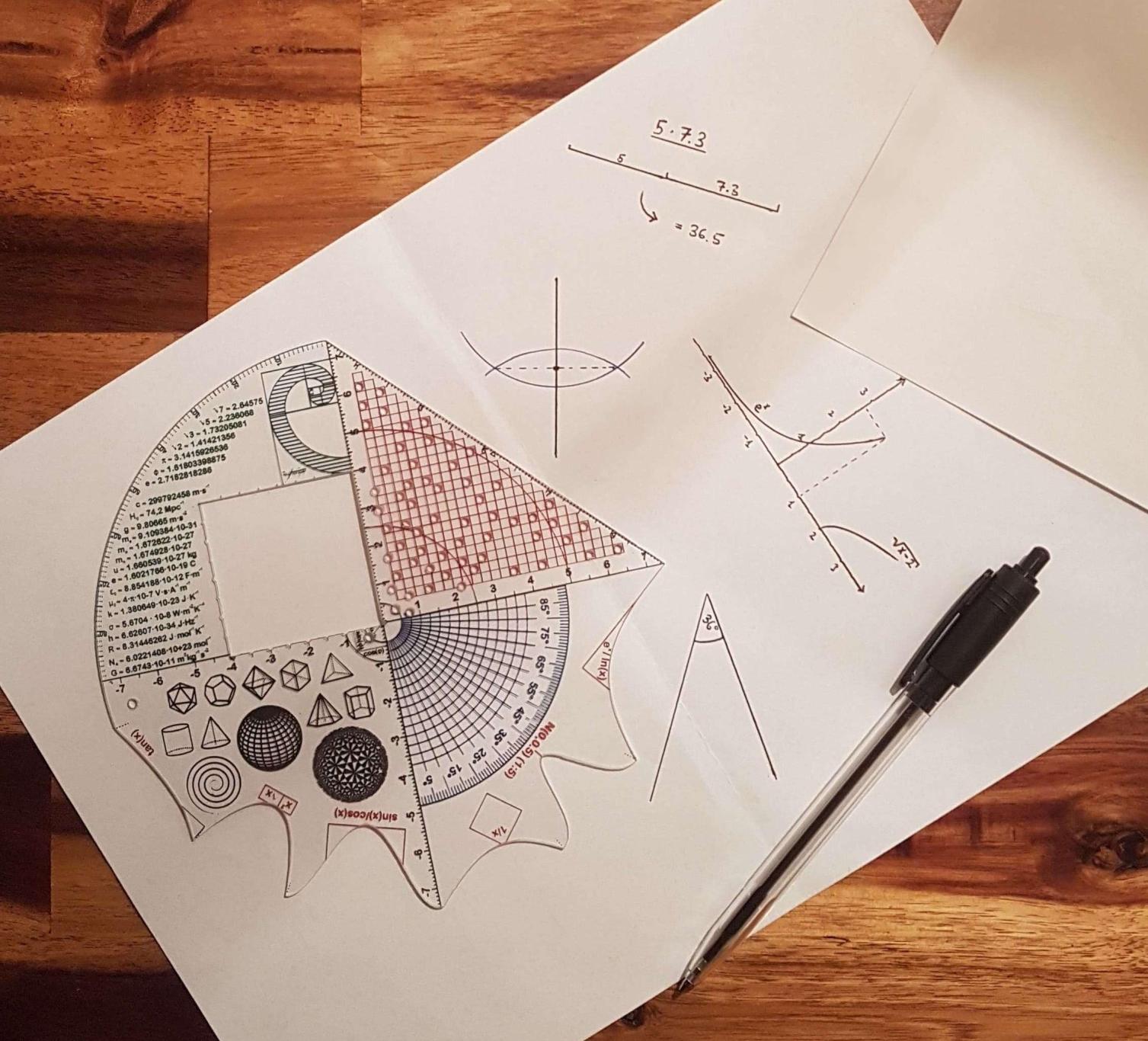 Spiel ist integraler Bestandteil des Lernprozesses. Durch seine Vielfalt und Ästhetik lädt der Geofisch ein, mit ihm Formen und Konstruktionen zu erkunden. Die Kurvenschablone erlaubt viele Kurven sauber und schön zu ziehen. Und durch die im Geofisch verbaute Menge an Funktionen lässt sich immer ein neuer Weg für ein altbekanntes Problem finden. Probiert euch aus und schreibt uns über eure Entdeckungen!
