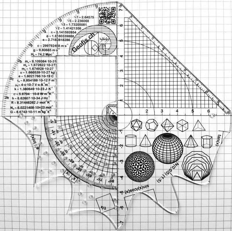 Der Geofisch ist das Schweizer Taschenmesser des Mathematikunterrichts. Er ist Zirkel, Lineal, Winkelmesser, Zeichenhilfe, Kurvenschablone, Rechenschieber, Tabelle für Sinus und Kosinus, Integralschätzer, Visualisierungshilfe und Sammlung physikalischer Konstanten in einem - und vieles mehr! Dabei ist er ultraleicht und passt bequem zwischen die Seiten eines Schulbuchs - und macht somit das mühsame Mitführen von Material überflüssig.